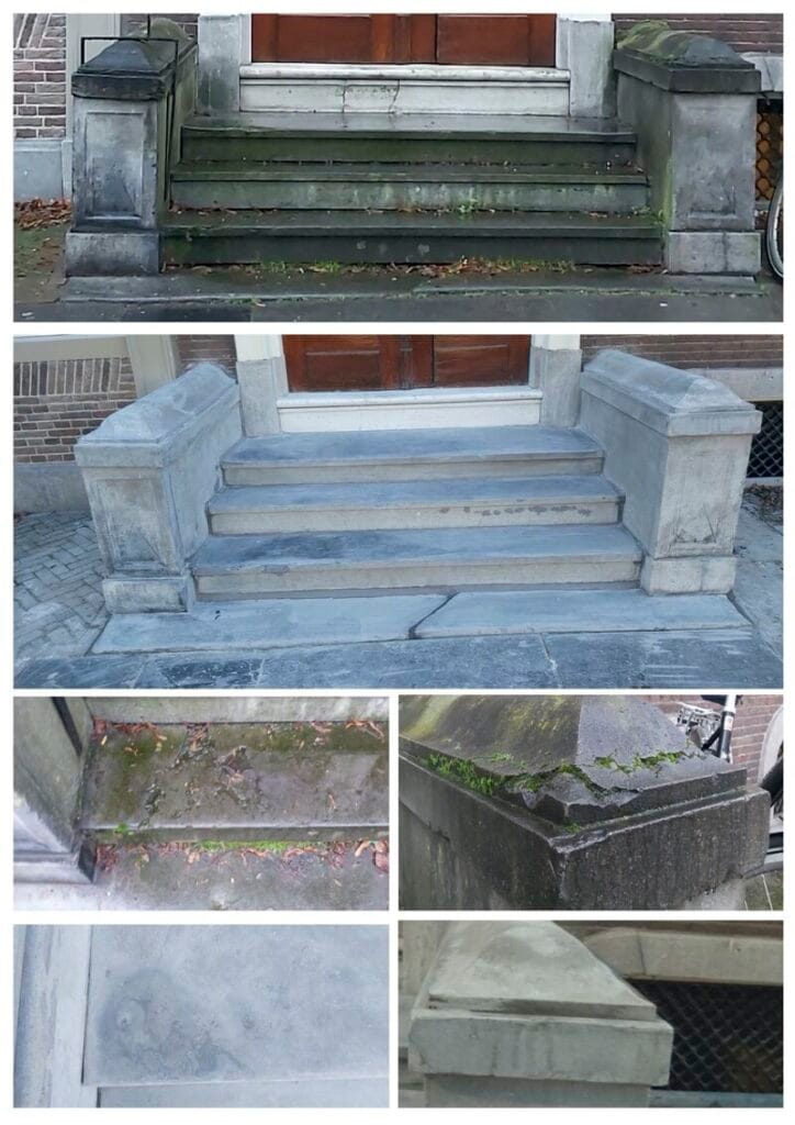 Belgisch hardstenen trappen krijgen met de tijd te maken met slijtage, scheuren en verkleuring. Door vakkundige restauratie — waaronder herstellen, opvullen, schuren, zoeten en polijsten — brengen we het hardsteen weer terug in zijn oorspronkelijke, hoogwaardige staat. Het resultaat is een duurzame, veilige en esthetisch perfecte trap die weer jarenlang meegaat.